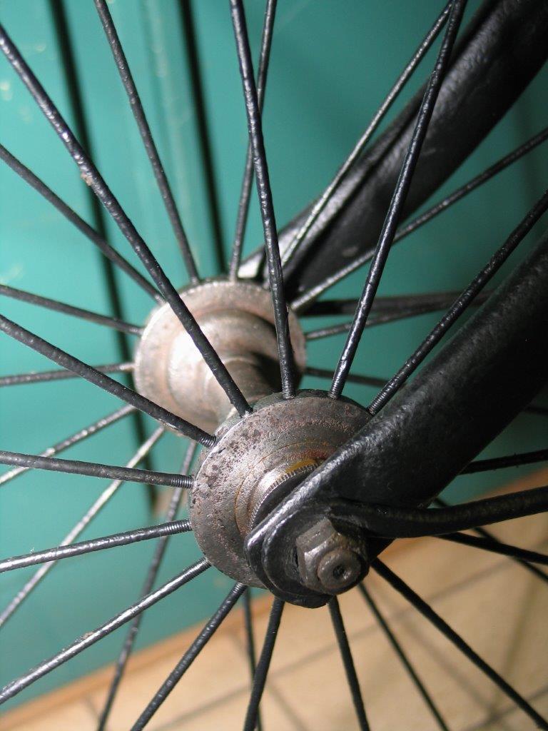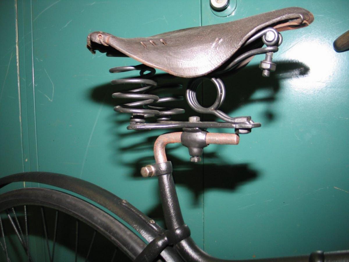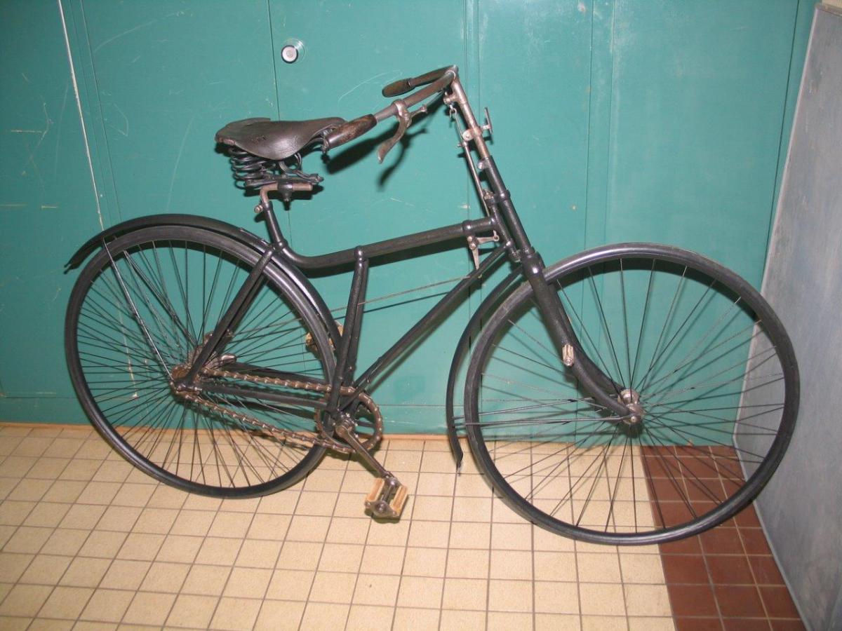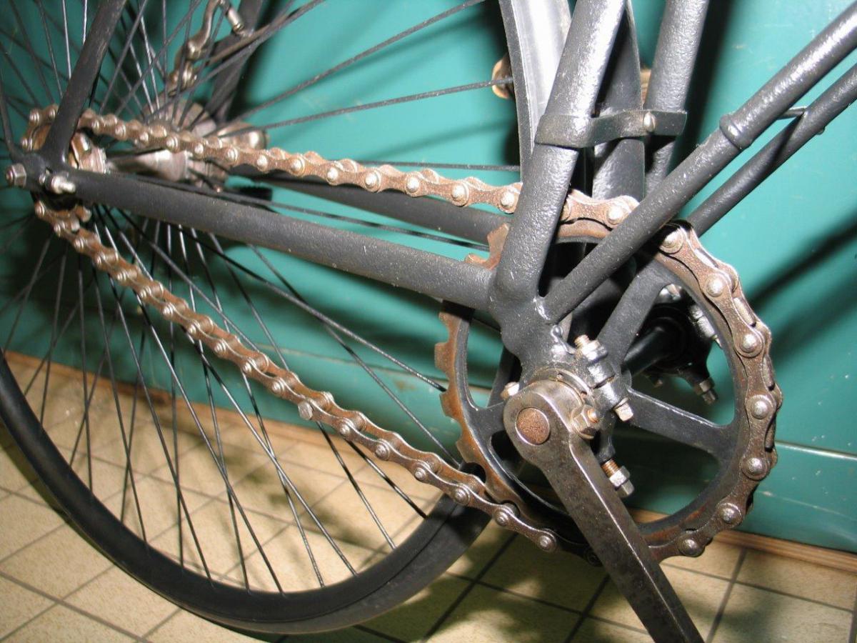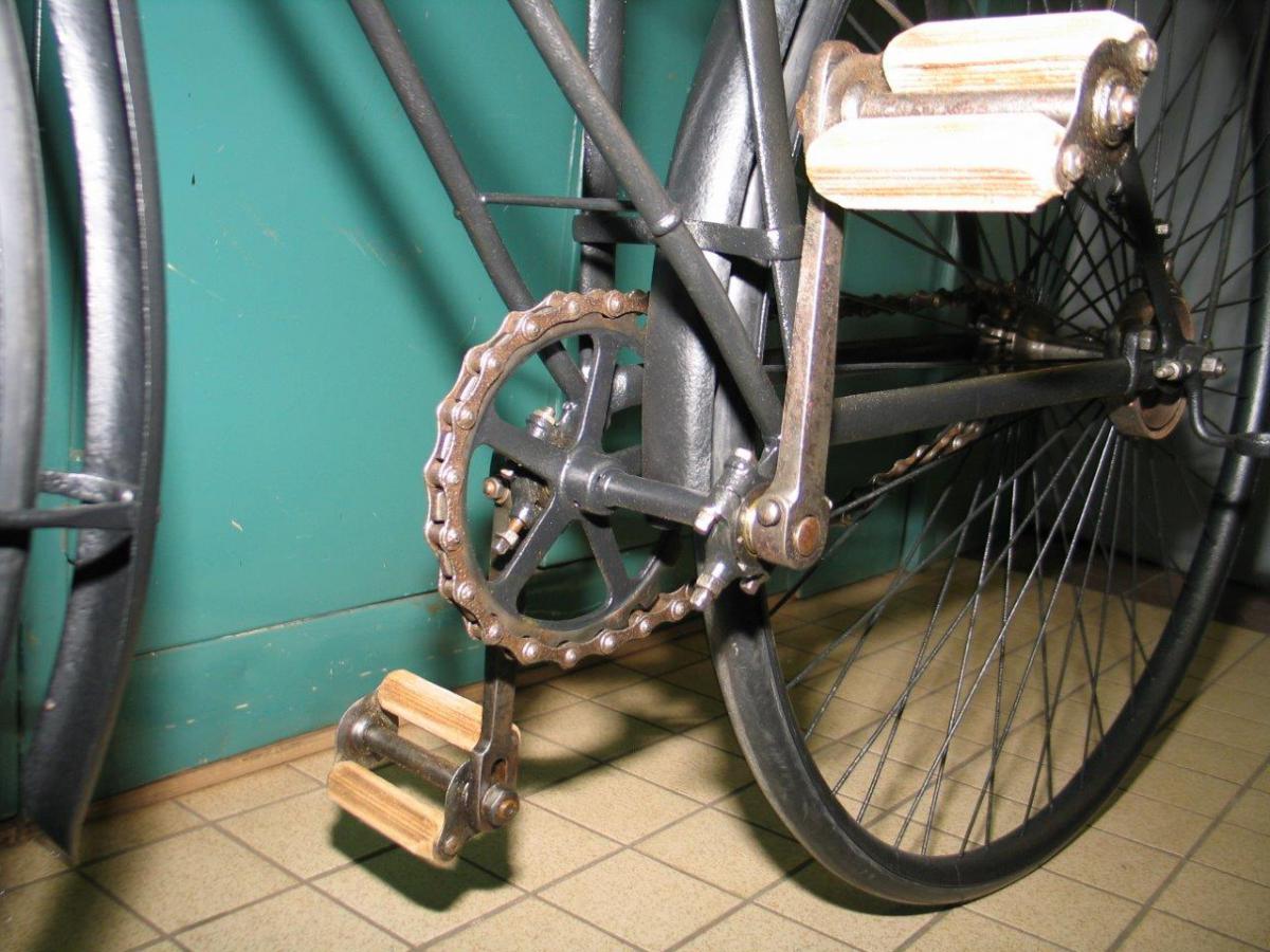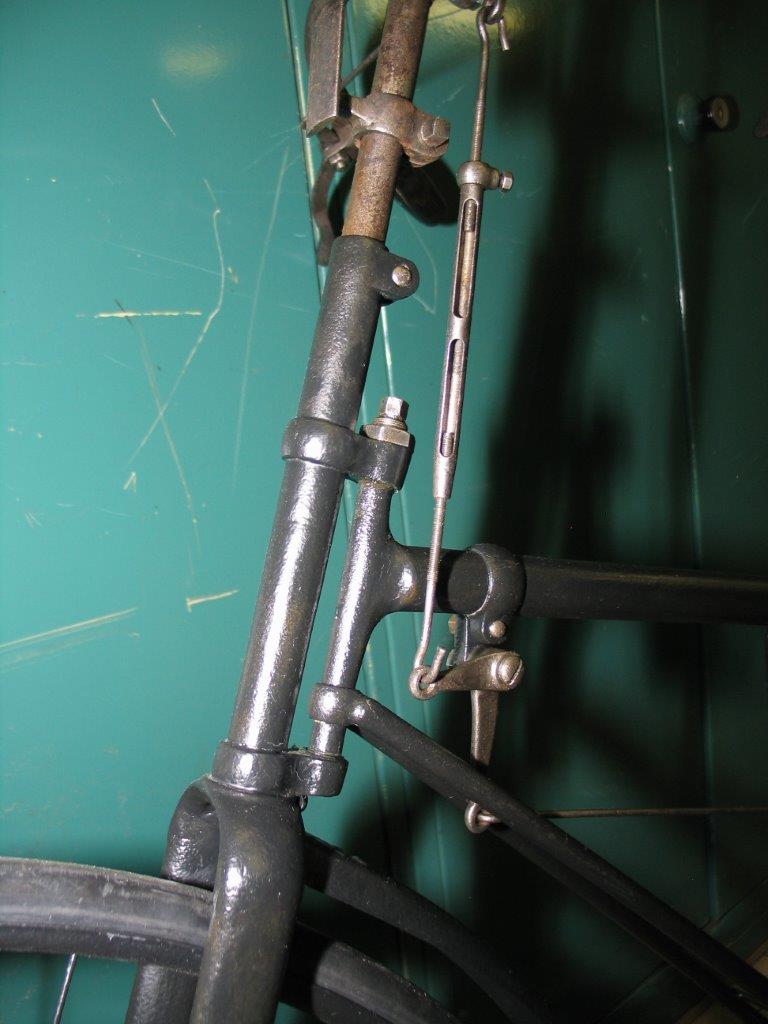 The bike shows many beautiful details, like the chin running inside the frame. And of course there's this very ingenious frame. If you think it looks lightweight you'll be surprised, it's actually very heavy. This model was one of the many experiments when bicycle designers were looking for the perfect bicycle frame. Great to look at!